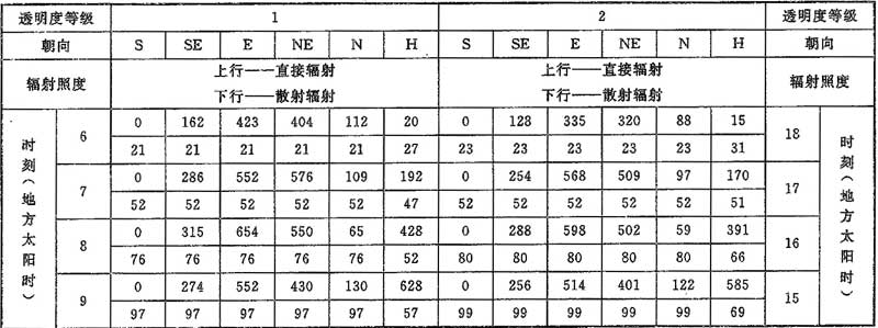 附錄D 夏季透過(guò)標(biāo)準(zhǔn)窗玻璃的太陽(yáng)輻射照度